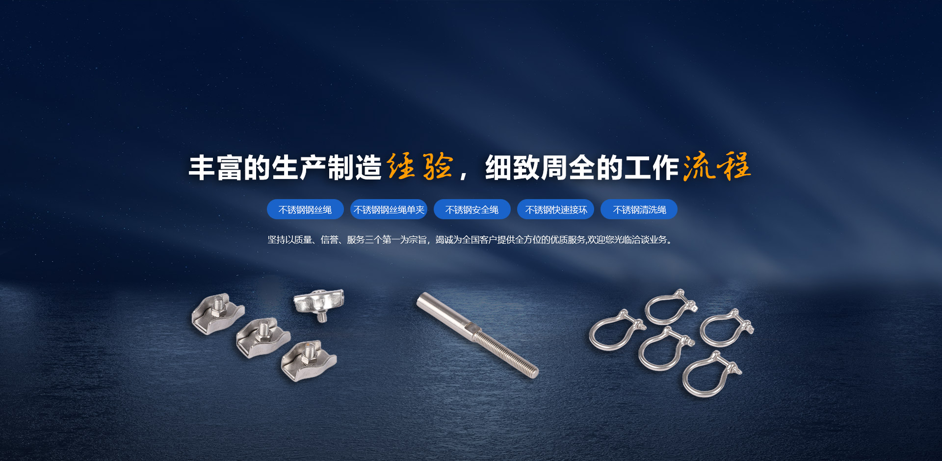 我公司生產不銹鋼鋼絲繩,鋼絲繩配件,不銹鋼索具配件等,是一家集研發(fā)、生產、銷售、售后為一體的綜合性企業。